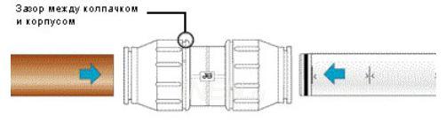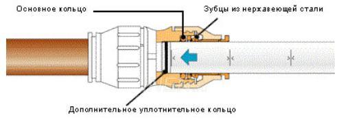 облегчить процесс вставки трубу в фитинг (снятая фаска и уплотнительное кольцо).